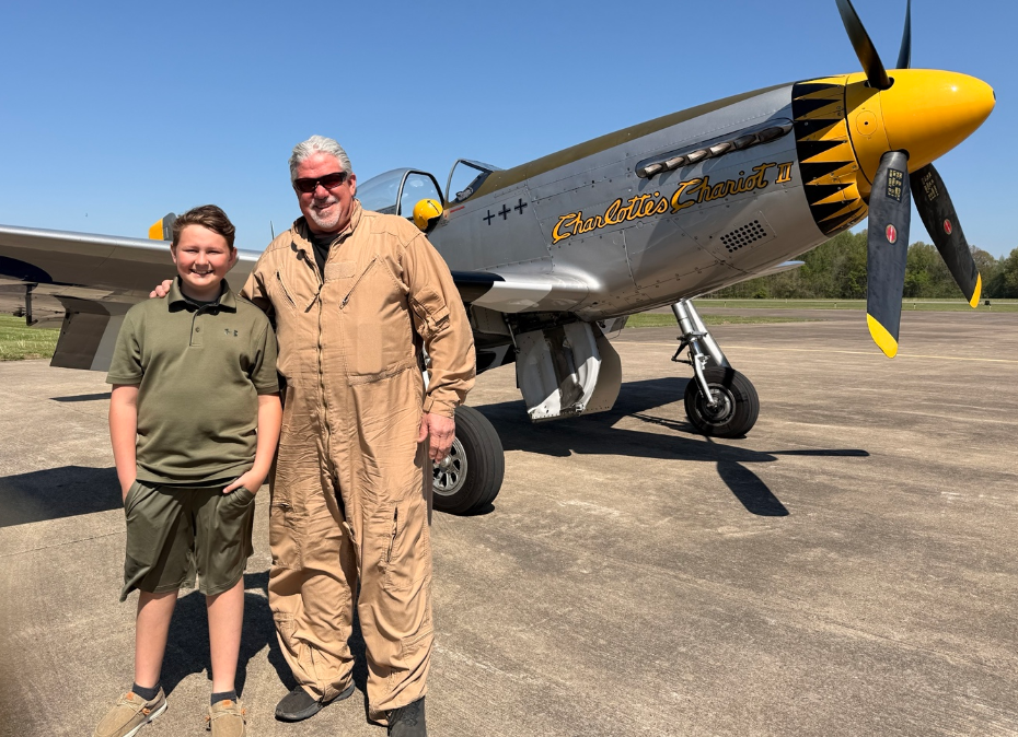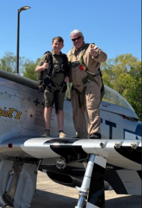 Just before taking flight, Trace reflected on the significance of the moment. “It’s the P-51 fighter plane from World War II, and they’ve got six or eight machine guns, and I’m pretty sure they shoot .50 calibers,” he said. When asked if he hopes to become a pilot one day, Trace answered simply, “I hope so.”